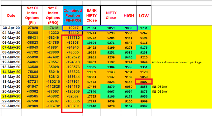 MKT made high 9889 with low volume and slipped to 8807 with volume....Still Big players (FII & PRO) are bearish..